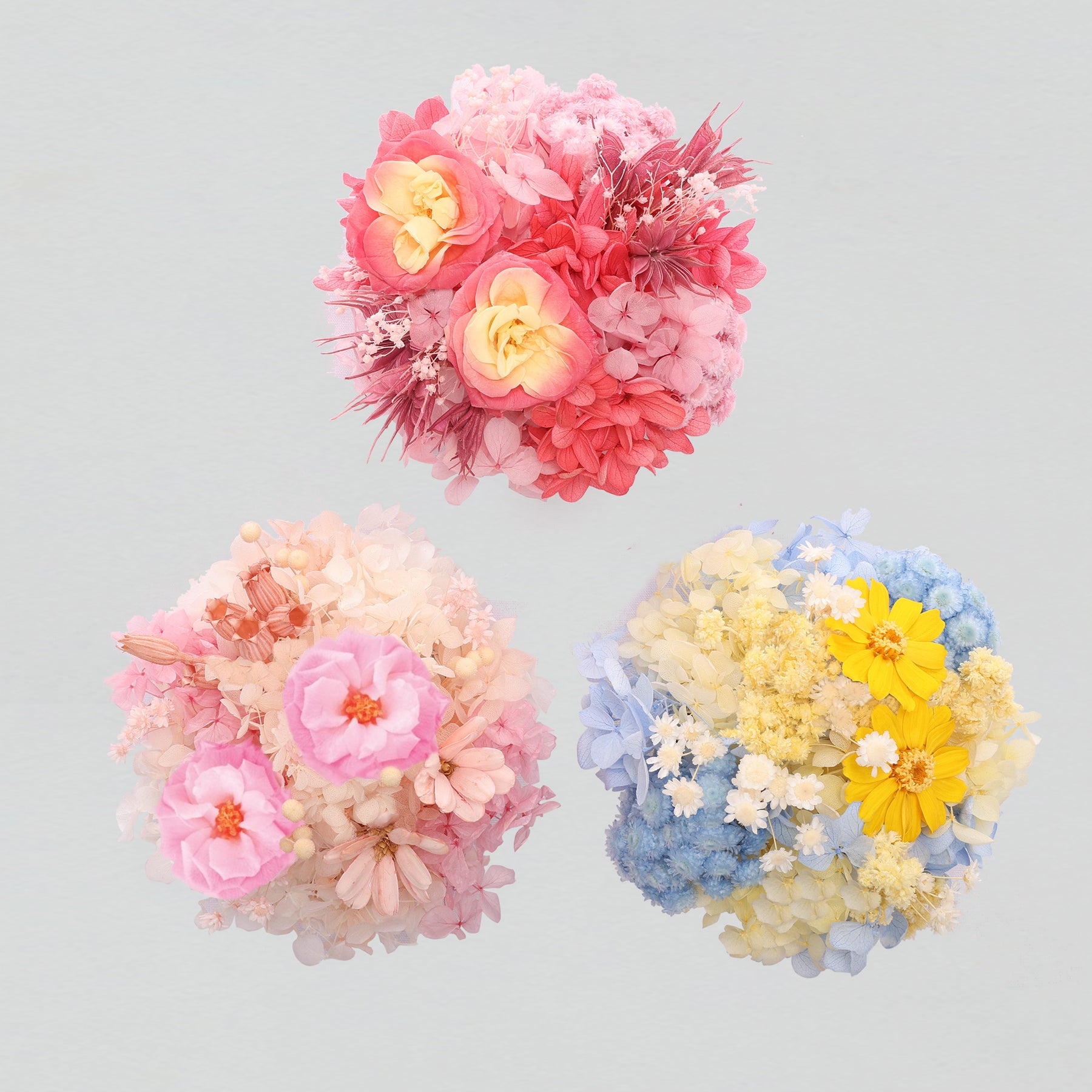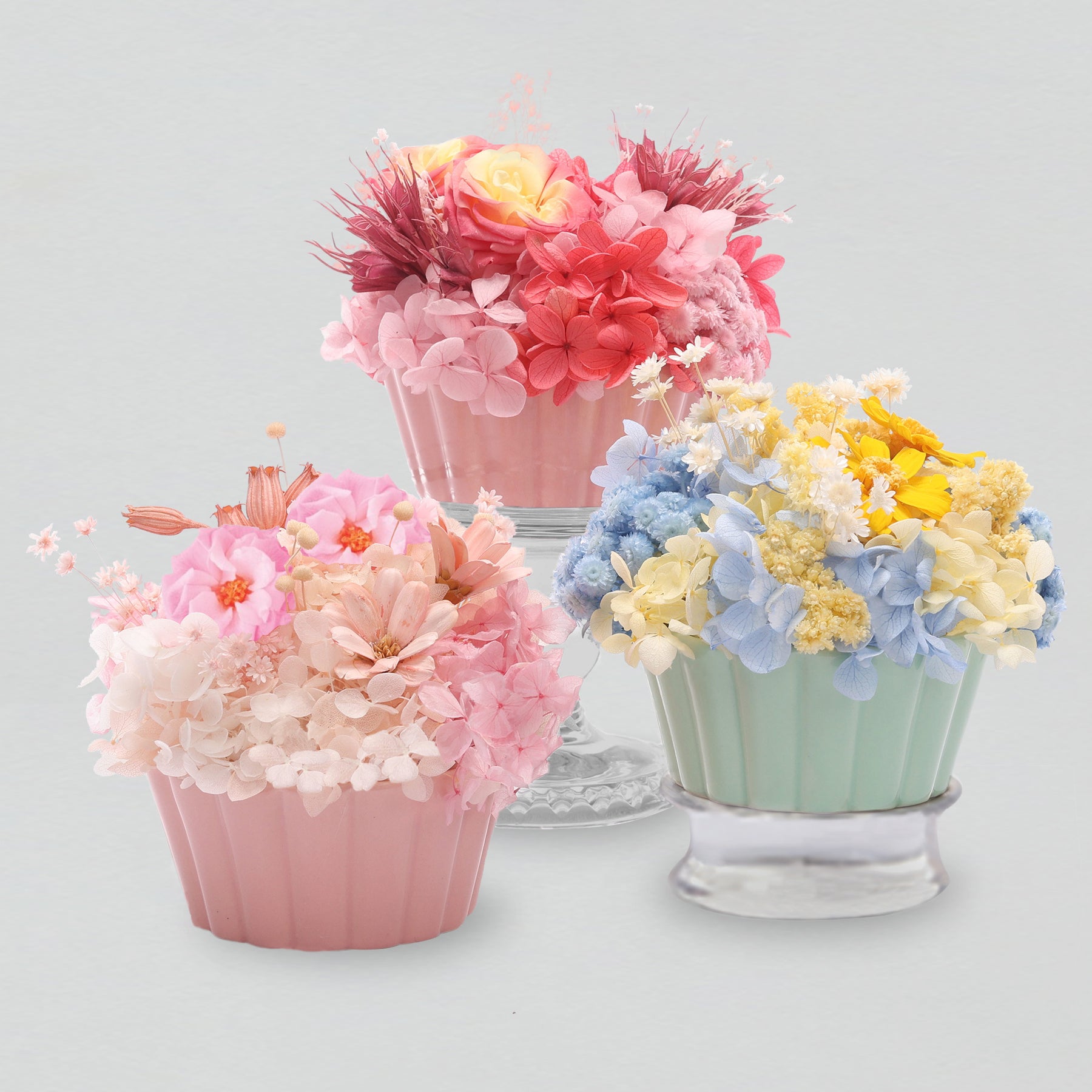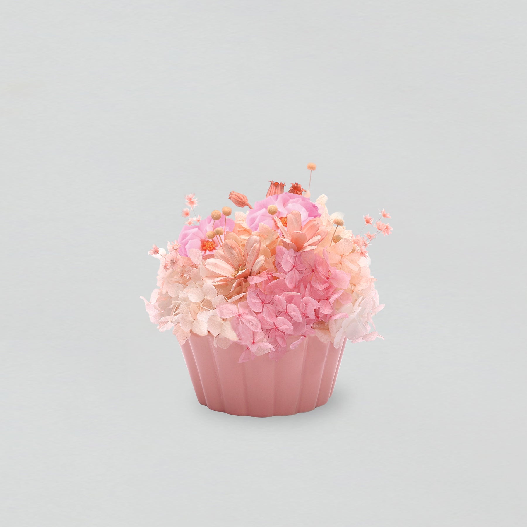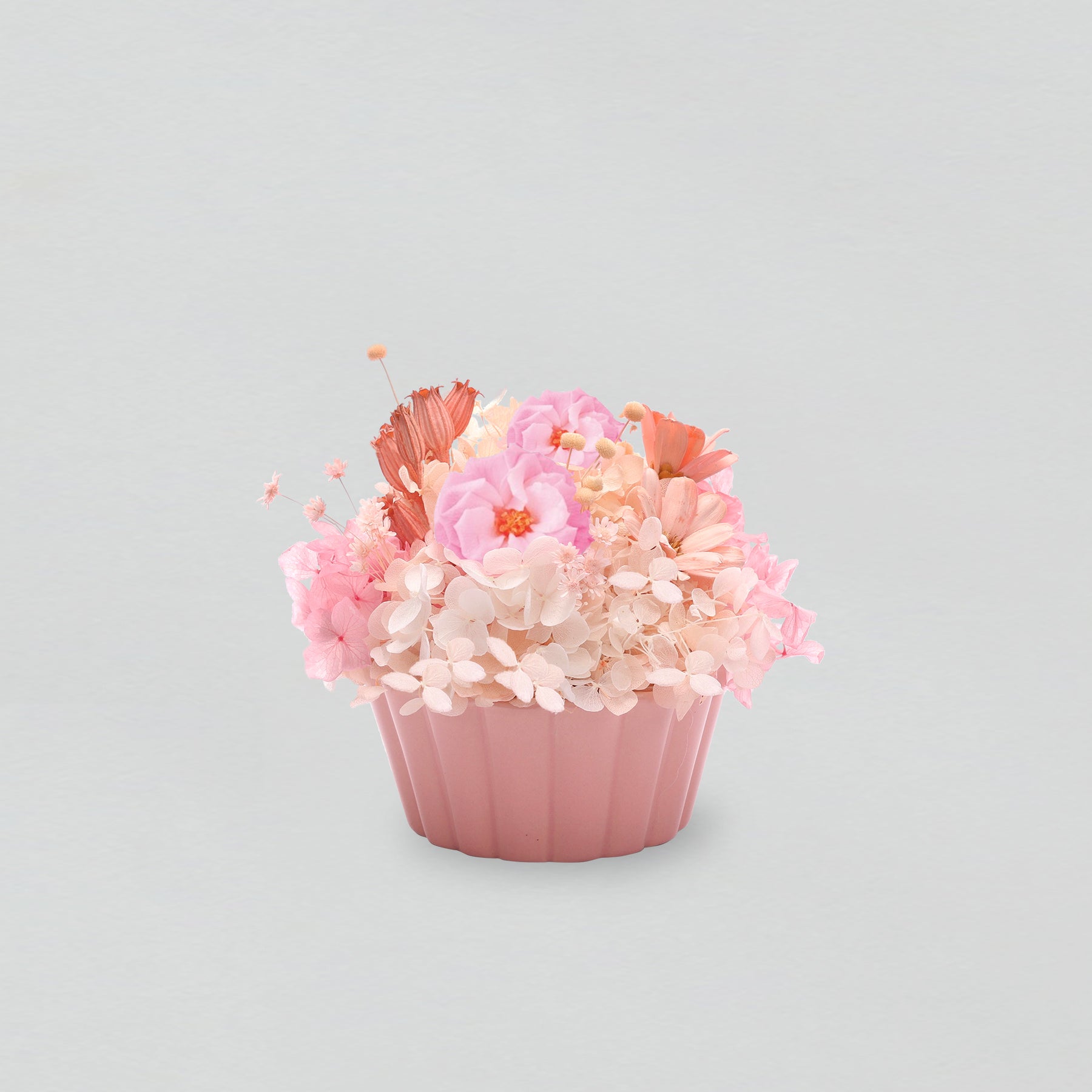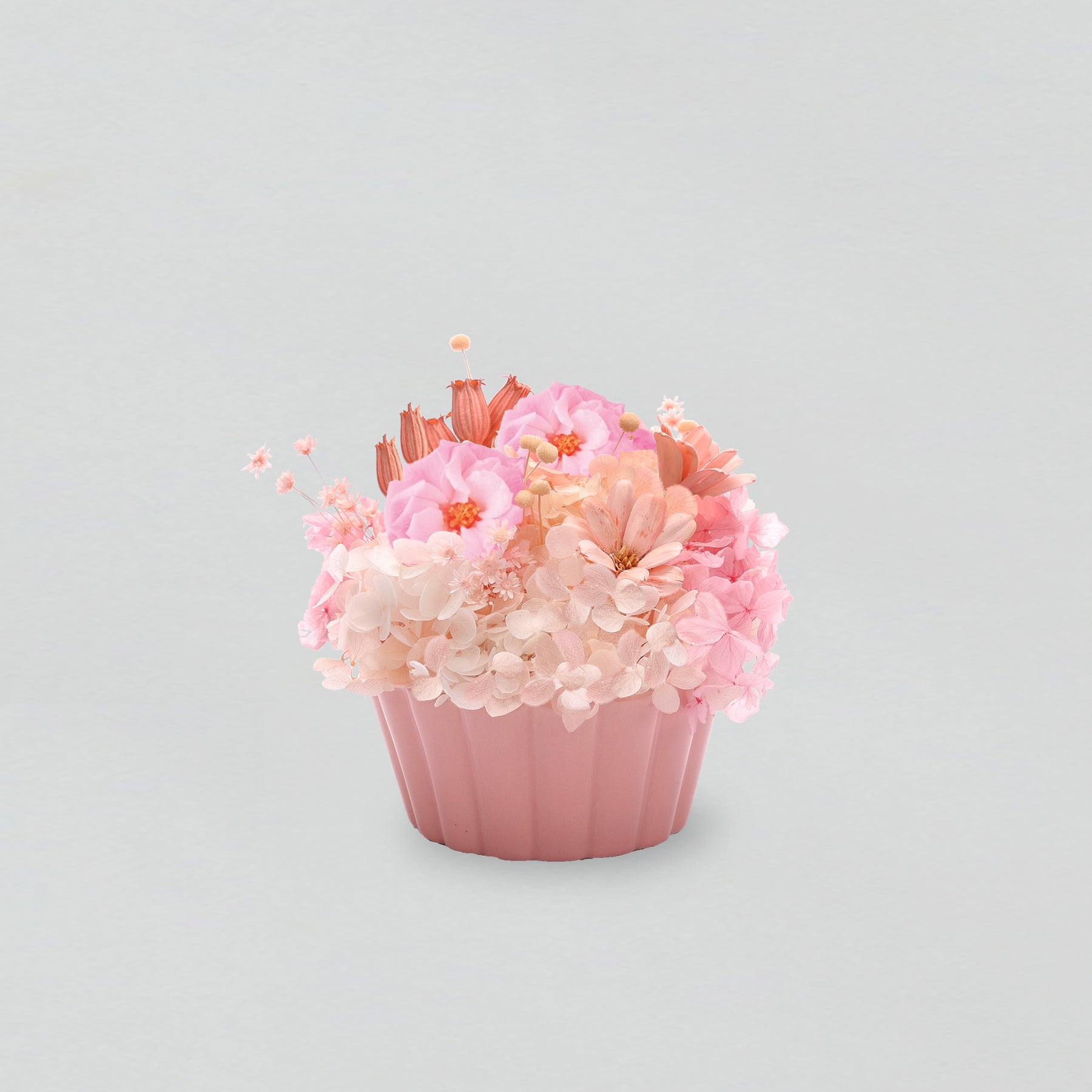 The Floral Cupcakes are a delightful blend of elegance and charm, featuring an array of carefully arranged blooms that resemble the soft, inviting appearance of freshly baked cupcakes. A delicate blend of soft pink and white eternity blooms, this floral cupcake is a graceful work of art that evokes the soft elegance of pastel confections.
