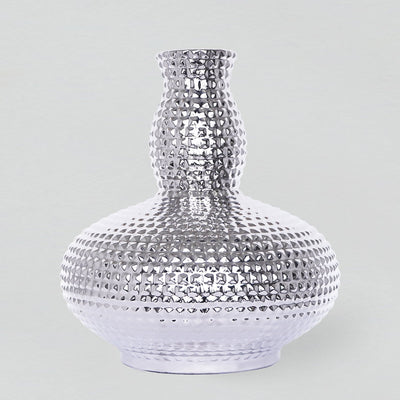 The Viola vase comes in a gourd shape and features a textured surface all around in a chrome finish. Each vase is hand blown and specially curated from our team's global travels. This beautiful vase is perfect for tall flower arrangements.
