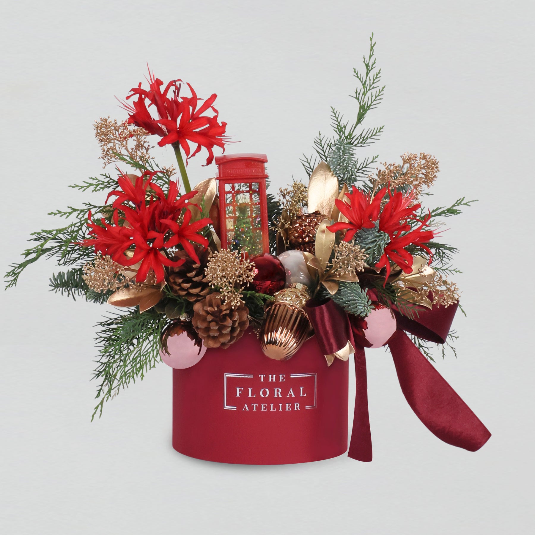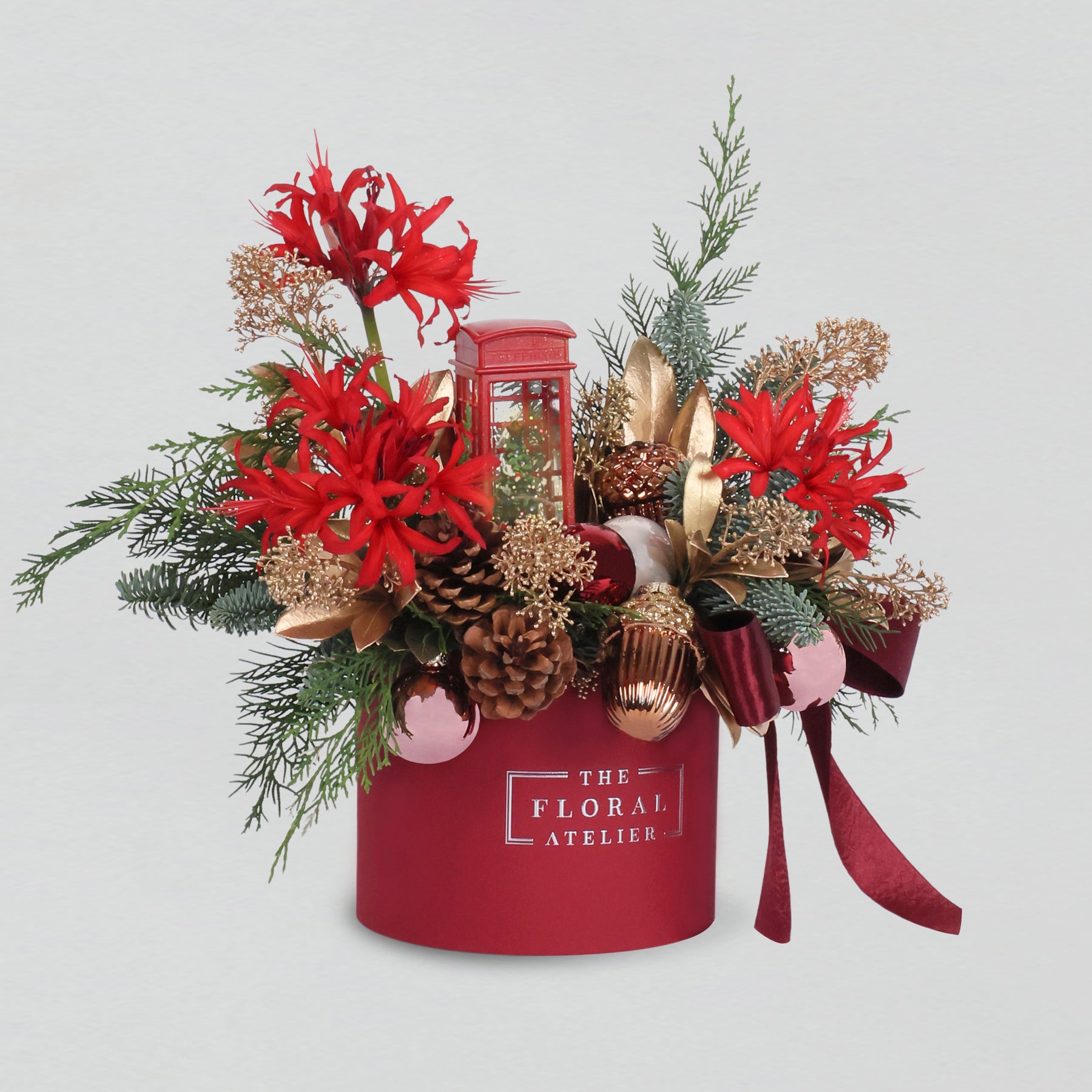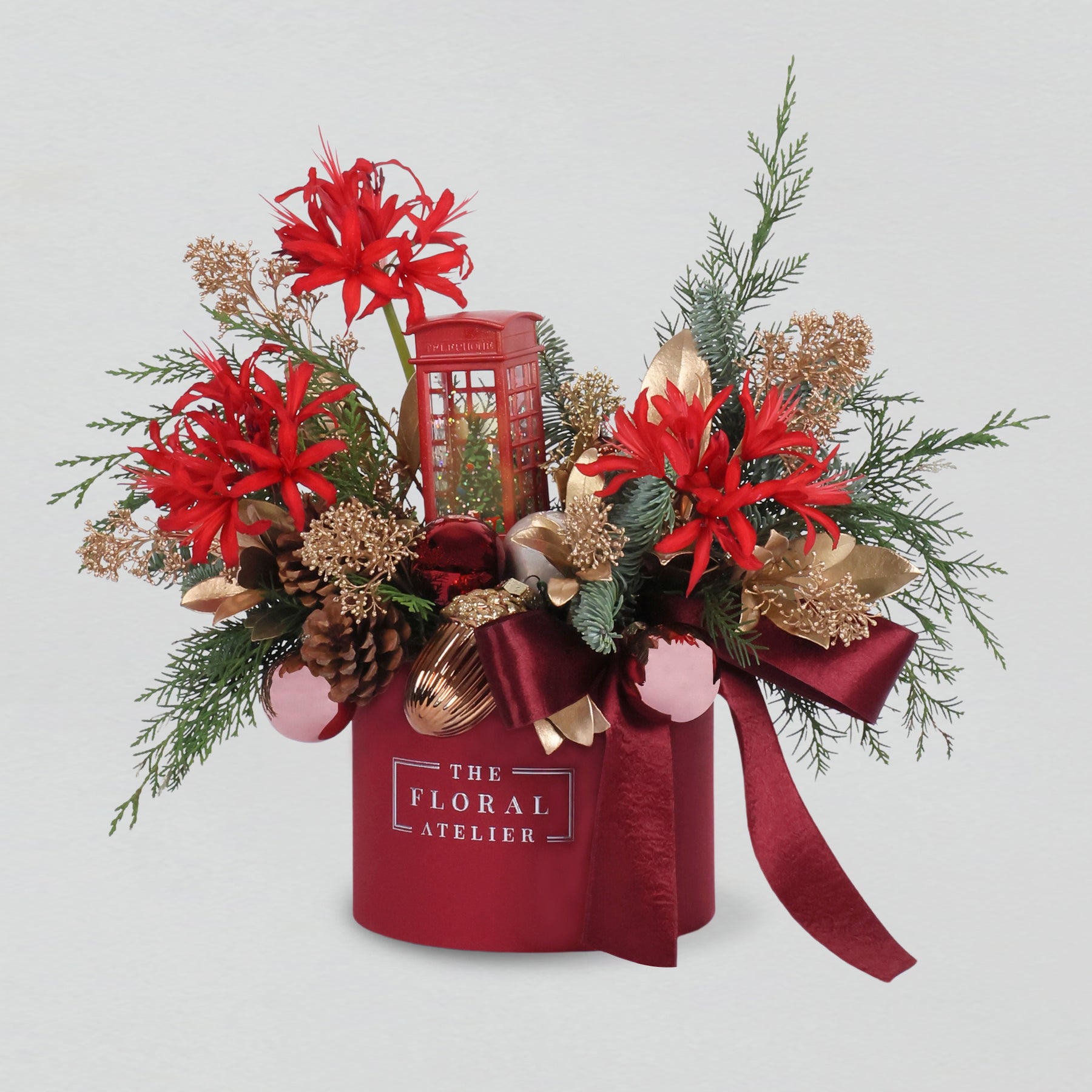 Bring the spirit of a classic Christmas tale to life with our Red Petite Bloom Box. Deep red blooms, paired with lush green foliage and sparkling accents, evoke the warmth, joy, and magic found in festive carols and celebrations. Every detail has been thoughtfully arranged to capture the essence of the season, blending nostalgic charm with sophisticated holiday style.