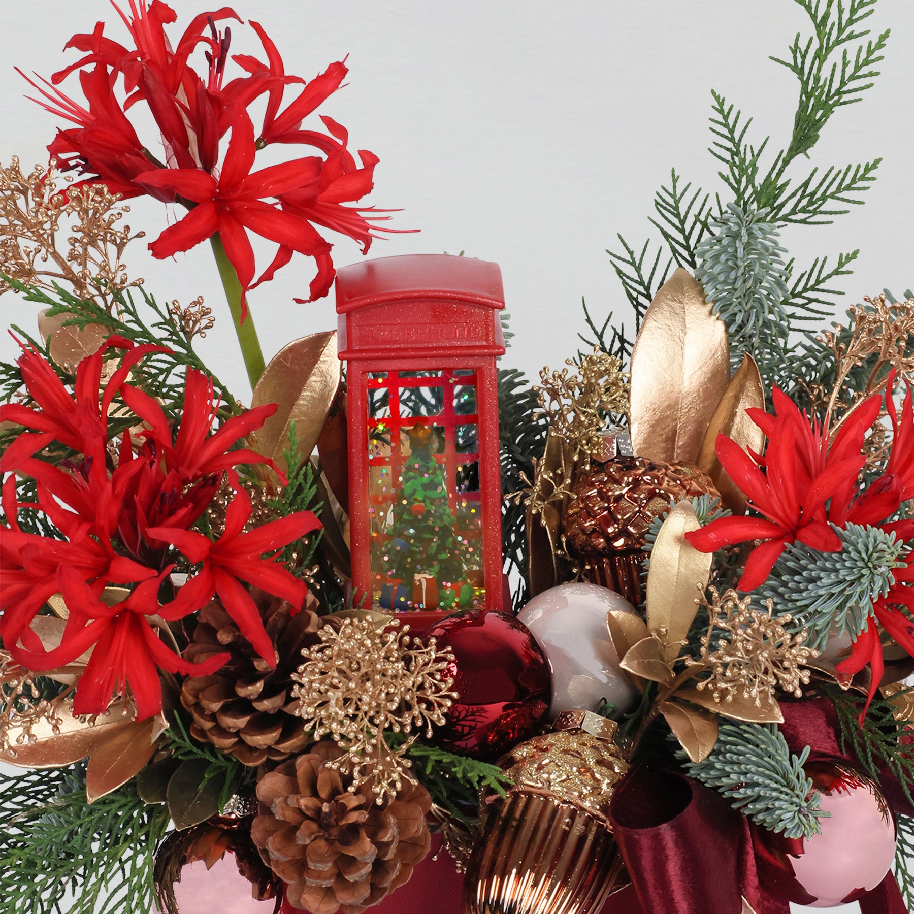 Ideal as a gift or as a seasonal accent at home, this arrangement fills any space with a sense of festive wonder, elegance, and the subtle whimsy that defines the holidays.