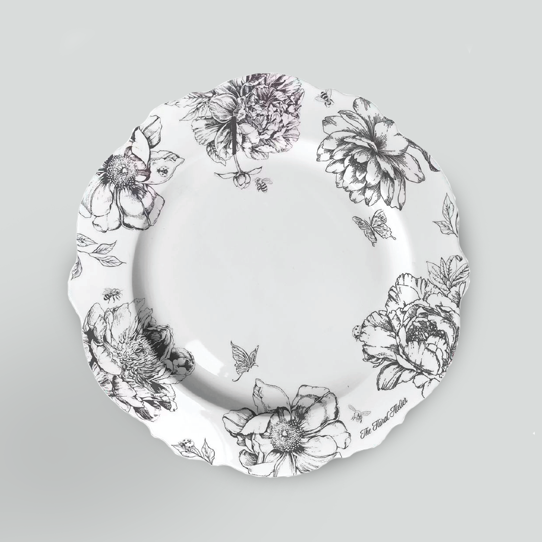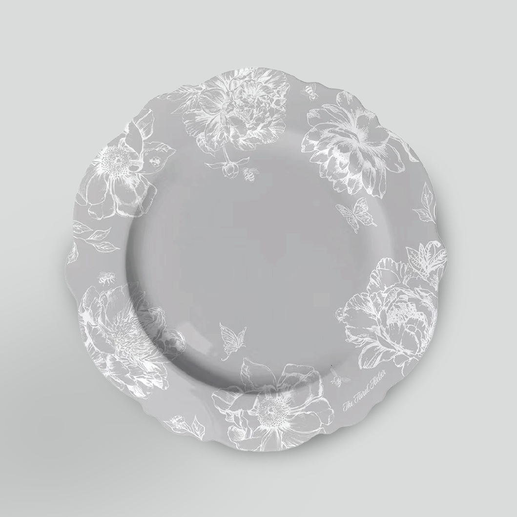 With signature floral line illustrations refined in white and grey, the Charger Plates were designed for The Floral Atelier’s 10th Anniversary Collection, celebrating a decade of artistry, sophistication, and the enduring beauty of florals. In elegant tones of white and grey, each plate reflects a balance of artistry and timelessness.